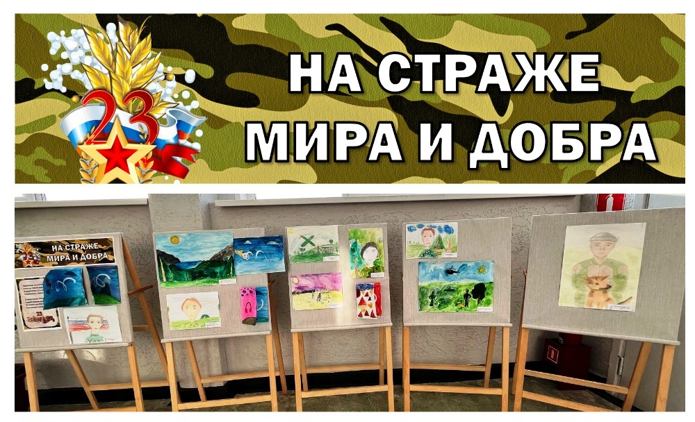 Учащиеся декоративно-прикладного отделения приняли активное участие в выставке творческих работ «На страже мира и добра», посвящённой Дню защитника Отечества. На ней представлены рисунки, выполненные в разных техниках, а также интерактивные поздравительные открытки.